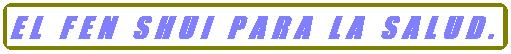 Bienvenidos a La Red de Internet de la Organizacion de Seminarios, Terapias y Consultas sobre la Sanacion a travez del FEN SHUI . . . - Ven y participa ! anote nuestra programacion de Seminarios, etc. . . . Estamos remodelando nuestro sitio y actualizando nuestras afiliaciones . . . ! - Gracias por su VISITA ! ...